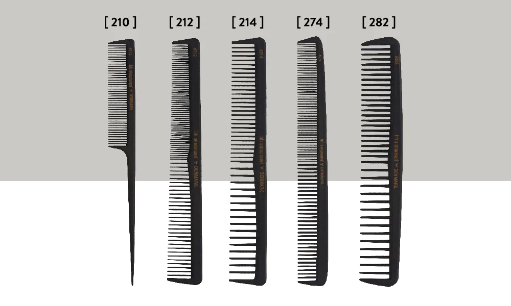 HH Simonsens češljevi za profesionalnu upotrebu izrađeni su od karbona – poseban i jak materijal, što čini češljeve laganim i udobnim za upotrebu.